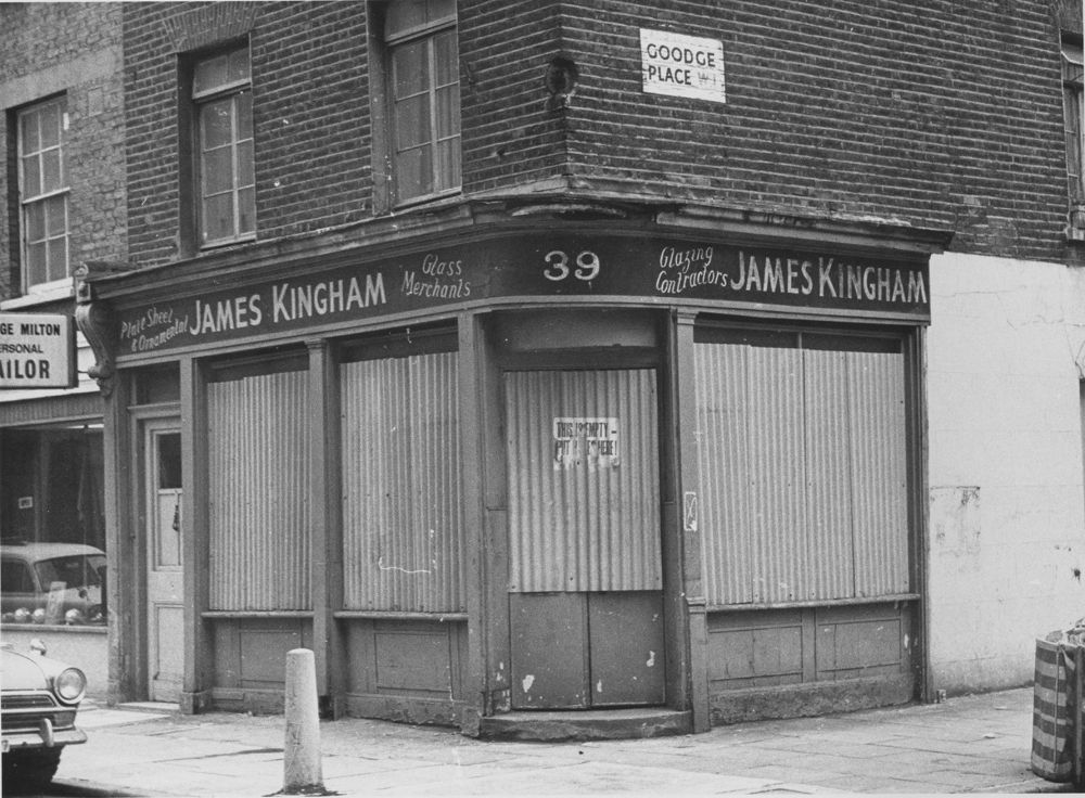 In 1975 the ground floor at 39 Tottenham Street was a disused and boarded up glass shop and looked like this.